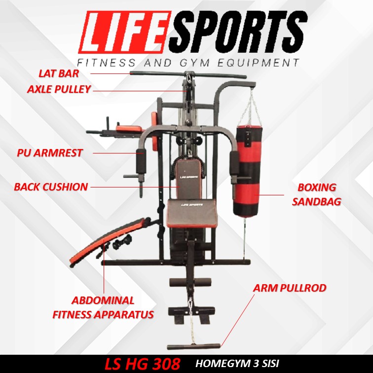 NQG – New Alat Olahraga Gym Fitness Homegym 3 Sisi Lifesports LS 308 Plus Samsak
